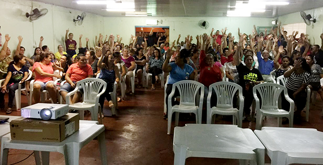 DELIBERAÇÃO - Cerca de 200 trabalhadores compareceram na sede do Sindicato e aprovaram, por unanimidade, a contraproposta da Prefeitura no benefício que passa de R$ 135,41 para R$ 380, aumento de R$ 244,59 no bolso dos Servidores. Na prática, a categoria não sai lesada e terá maior poder de compra. Novos encontros devem acontecer, em breve, entre Sindiato e Prefeitura e, posteriormente, com o Servidor para continuar o avanço nos demais itens da Campanha Salarial.