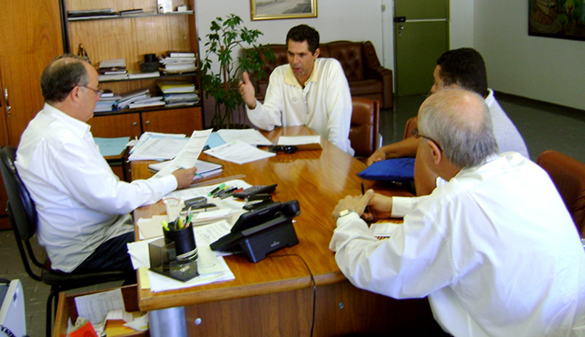 | Presidente Miguel Ângelo Latini e diretores do Sindismar durante negociação com a Prefeitura de Santa Isabel |