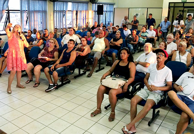 | A presidente do Sindserv Guarujá, Márcia Rute, apresenta aos trabalhadores os detalhes da contraproposta |