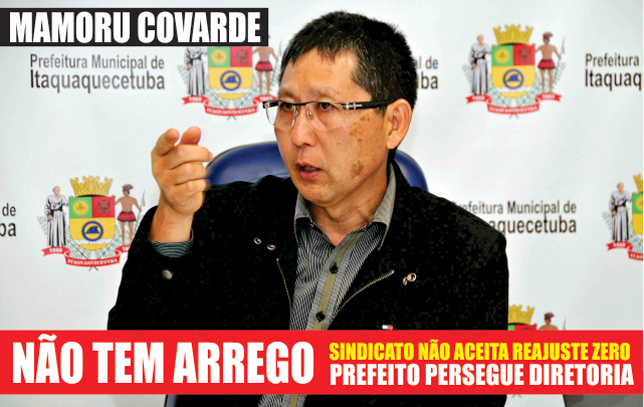O prefeito de Itaquaquecetuba, Mamoru Nakashima, está disposto a tudo para impedir o Servidor de ter seu merecido reajuste salarial. Sua mais nova manobra é afastar os dirigentes sindicais de suas funções através do cancelamento da liberação dos companheiros garantida por lei. Sem tempo