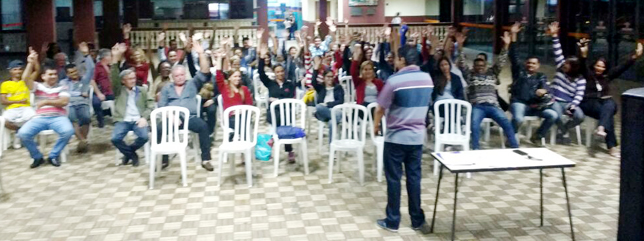 Manoel Bueno Cardoso Júnior, mais conhecido como Índio, rechaçaram a proposta de apenas 2% de reajuste em assembleia na sede, ontem, dia 22 de maio.
