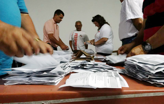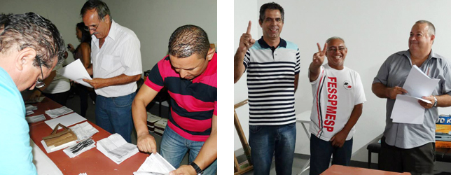 | Diretores da Fesspmesp durante apuração dos votos. Servidores optaram pela continuidade do bom trabalho! |