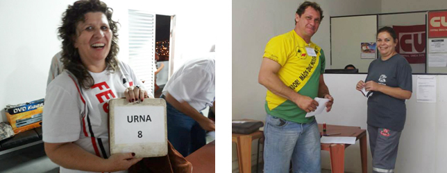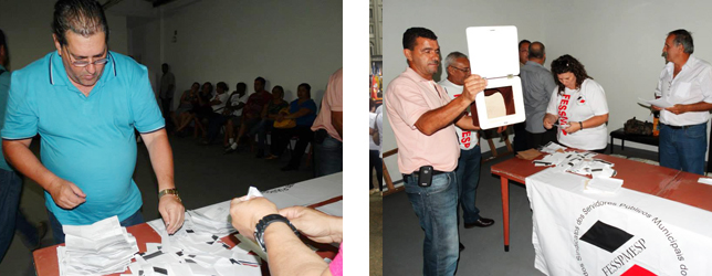 | Nossa Federação organizou, nos dias 9 e 10 de abril, todo o pleito para escolha da nova diretoria do Sindicato dos Servidores Públicos Municipais de Arujá. A Chapa 1, encabeçada pelo companheiro Miguel Ângelo Latini, teve 667 dos 855 votos válidos. A chapa concorrente ficou com 153. Brancos e nulos somaram 35.