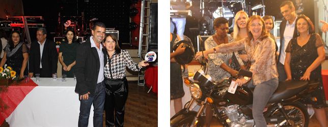 Detalhes - Durante o evento, alguns fundadores e diretores da entidade foram homenageados com um troféu. Muitos sócios Servidores concorreram a uma moto zero quilômetro. Mas a grande sortuda foi a Agente Comunitária de Saúde, Maria Cristina de Oliveira, que ficou com a motoca.