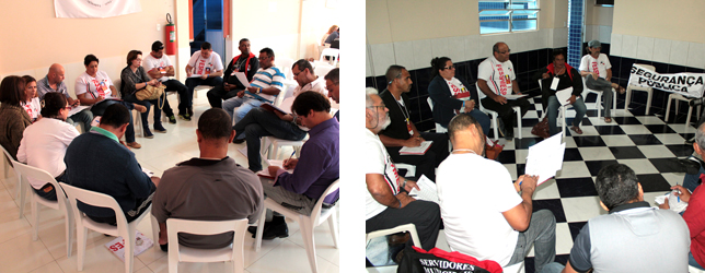 Prática - Após o almoço, os participantes foram divididos em sete grupos para avaliar dois orçamentos: um manipulado (viciado) e o outro no limite. A prática, segundo os companheiros, foi muito produtiva. Depois disso, os grupos apontaram as falhas dos documentos para as palestrantes. |