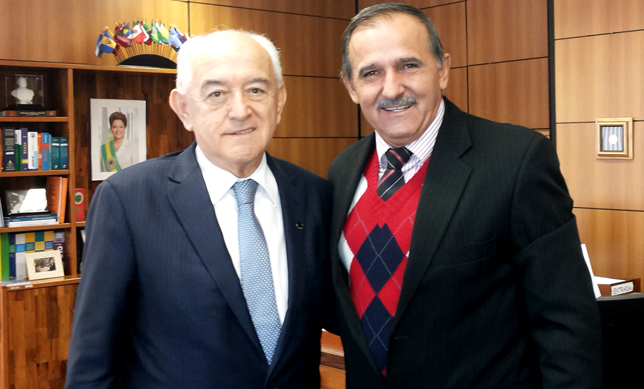 | Nosso presidente Aires Ribeiro esteve com o ministro do Trabalho e Emprego, Manoel Dias, dia 28 de maio, em Brasília. Na ocasião, ele foi apresentar o trabalho da Fesspmesp em todo o estado de São Paulo e falar de projetos futuros na organização e fortalecimento do setor público municipal n o País.