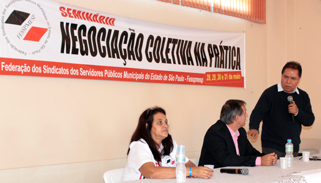 | João Carlos Juruna, secretário-geral da Força Sindical, marcou presença, dia 30 de maio, no Seminário de Negociação Coletiva na Prática, organizada pela nossa Federação. O evento começou dia 28 e foi até sábado (31). Teve a presença de mais de 200 líderes sindicais de todo o País (clique aqui e saiba mais sobre o seminário).