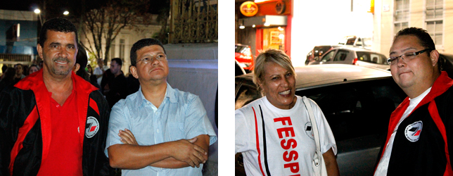 Ditinho - Nosso diretor Edilson Humberto Lopes (Ditinho), que coordena o movimento, falou à Fesspmesp: "Há vários postos de trabalho totalmente parados. Os companheiros estão fortalecendo o movimento e a cidade está ouvindo nossa palavra de ordem. Não estamos aqui para prejudicar o povo. Estamos aqui para lutar por melhores salários e mais benefícios para uma categoria que está sendo totalmente injustiçada".