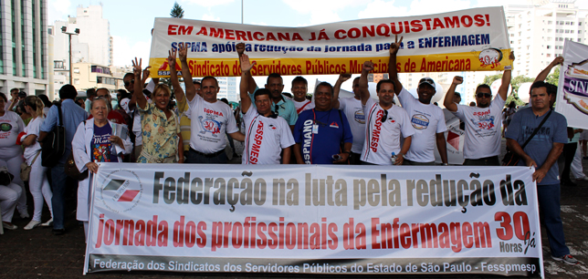 | 14/3/2014 - Dirigentes da Fesspmesp participam de ato pela redução da jornada de trabalho para a Enfermagem |