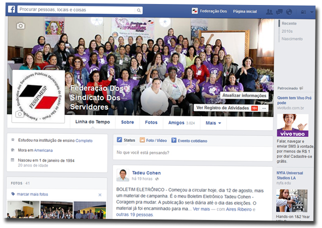| Nos últimos dois anos, a Fesspmesp tem investido forte na comunicação da entidade. Sob a coordenação do secretário de imprensa Denilson Bandeira repaginou o site, entrou nas redes sociais e melhora dia a dia seu contato com os Sindicatos filiados e Servidores de todo o estado.