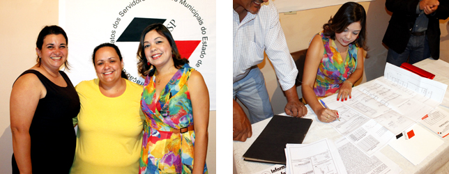 | ESTAMOS MAIS FORTES - Nossos dirigentes entregam para Cristiane (à esquerda), Certidão de Filiação |