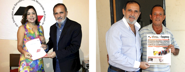 PÉ NA ESTRADA - As visitas começaram em Itapuí, onde Aires foi recebido por Ademir Gabriel, presidente do Sindicato. A oportunidade de diálogo com o dirigente garantiu que fossem abordados temas importantes para o funcionalismo. Nossa assessoria técnica e jurídica foi colocada à disposição. Na sequência, Aires foi a Pacaembu entregar o Certificado de Filiação para a presidente Cristiane da Silveira. Nosso presidente também parabenizou a entidade pelos 25 anos de luta na defesa do Servidor (leia mais). |