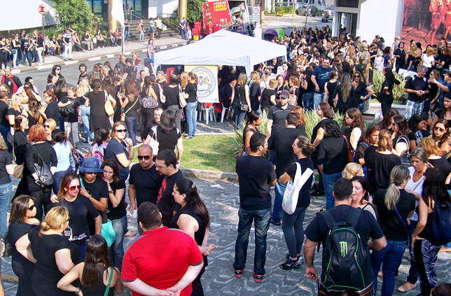 Vestidos de preto, com apitos e narizes de palhaço, após reunir um grande número de Servidores, os trabalhadores seguiram em passeata pelas ruas, passando pela sede da secretaria de Educação, onde fizeram inclusive "um minuto de silêncio pela Educação no Município".