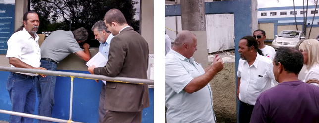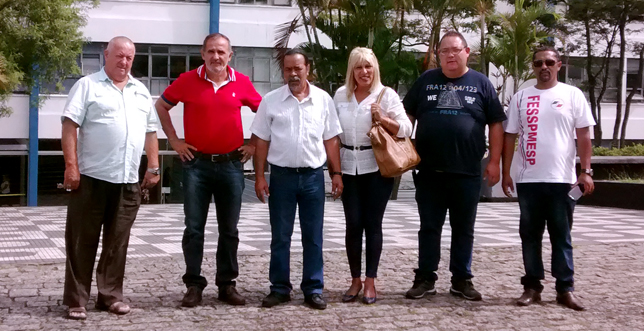APOIO - A tentativa de voltar ao trabalho, por parte de Ferrugem, foi acompanhada de perto por representantes da Fesspmesp e Sindicatos da região. Estiveram presentes nosso presidente Aires Ribeiro, o tesoureiro Cláudio Aparecido dos Santos (Ted), que também representou o Sindicato de Suzano, nosso advogado, Dr. Jamir e Toninho do Caps, diretor de Saúde e Segurança do Trabalho da nossa Federação e vice-presidente do Sintrasp (Sindicato dos Servidores de Osasco).