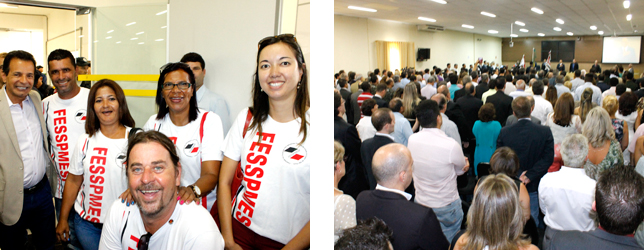 Os dirigentes da Federação estiveram presentes hoje pela manhã na cerimônia de posse do prefeito eleito de Americana, Omar Najar. Eleito em 7 de novembro, após Diego De Nadai ser cassado pelo Tribunal Superior Eleitoral (TSE). Na ocasião, nosso presidente Aires Ribeiro e a diretoria da Federação cobraram uma posição firme e urgente quanto ao atraso no pagamento dos Servidores para que assim a greve possa ser encerrada.