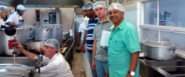 | Jair, Sérgio e Denilson acompanham averiguação feita pelo Sesmt em restaurante popular de Guarulhos |