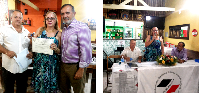 | Nosso presidente Aires Ribeiro, presente na posse, afirma: "Fomos prestigiar os companheiros de Guarujá que tiveram uma dura eleição. Desejamos muita sorte e oferecemos nosso apoio no que for preciso para garantir novas conquistas e avanços para o Servidor".