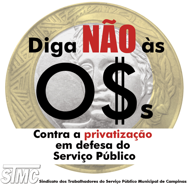 | O Sindicato dos Servidores Públicos de Campinas (STMC) não só repudia, como também combaterá a atitude do prefeito da cidade, Jonas Donizete, que pretende apresentar um projeto de lei para contratar Organizações Sociais (OSs), a fim de prestarem serviços nas áreas de Saúde, Cultura e Esporte. Segundo o Sindicato, esse tipo de projeto vai contra o serviço público de qualidade.Prejudica diretamente o povo e entrega para entidades privadas a gestão de serviços nas áreas da saúde, educação, cultura, esporte e lazer.