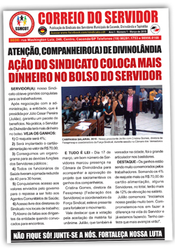 O SSMCDT (Sindicato dos Servidores de Caconde, Divinolândia e Tapiratiba) produziu na última semana seu primeiro informativo. A edição de nº 1, cujo nome é Correio do Servidor, destaca o pacote de benefícios conquistados pela entidade. Na prática, a ação do Sindicato, que surgiu com o total apoio da Fesspmesp, conseguiu colocar mais dinheiro no bolso do Servidor.