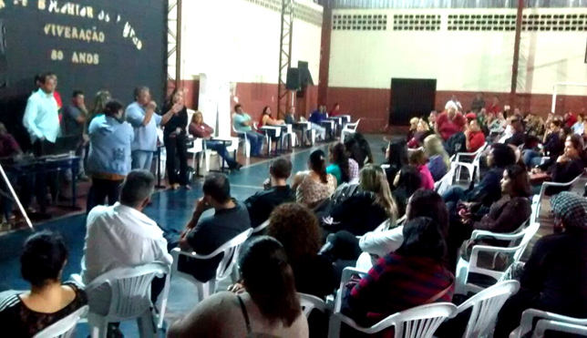 | O Sindicato dos Servidores de Itapecerica da Serra (SFPMIS) organizou, dia 20 de março, uma grande assembleia. Ao todo, mais de 600 Servidores estiveram na quadra da Escola Municipal Padre Belchior de Pontes, no Centro, para deliberar sobre a ação judicial de liberação do Fundo de Garantia (FGTS) dos companheiros.