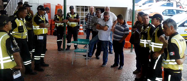 | No começo do mês, o Sintrasp (Sindicato dos Servidores Públicos Municipais de Osasco e Região) esteve reunido com os Agentes de Trânsito para debater demandas da categoria. O presidente da entidade, Jessé de Castro Moraes, o vice-presidente Antonio Rodrigues (Toninho do Caps) e os diretores João Carlos Ferreira e Antônio Lima ouviram reclamações e sugestões dos companheiros.
