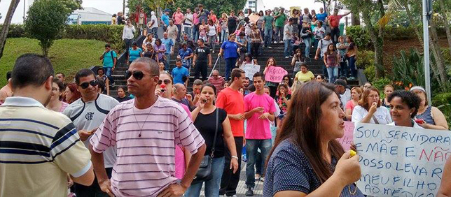 | Servidores permanecem de braços cruzados em frente à prefeitura contra o descaso do prefeito Bertaiolli |