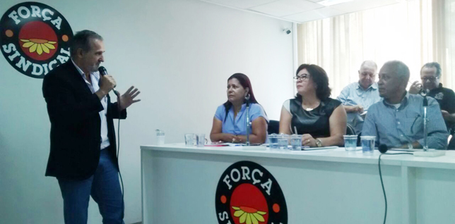 | Nosso presidente Aires durante encontro na Força Sindical. Setor público é contra a terceirização |