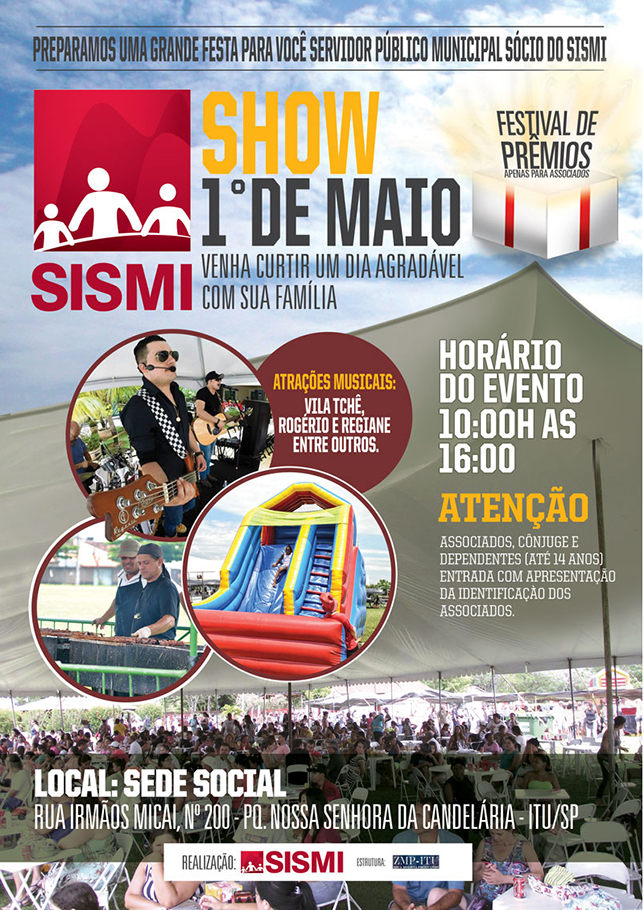 | O Sismi (Sindicato dos Servidores Municipais de Itu) convida todos os dirigentes da nossa Federação para a grande festa de 1º de Maio, em alusão ao Dia do Trabalhador. Será das 10 às 16 horas, na sede social da entidade, que fica na rua Irmão Micai, 200, Parque Nossa Senhora da Candelária.