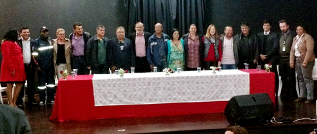 | Nossos dirigentes estiveram presentes na última quinta (30) na cerimônia de posse da nova diretoria do Sindicato dos Servidores de Embu das Artes. A equipe de direção da entidade é encabeçada por Sebastião Caetano Paixão, eleito com 88% dos votos válidos no pleito realizado em março, sob nossa coordenação (clique aqui e saiba mais).