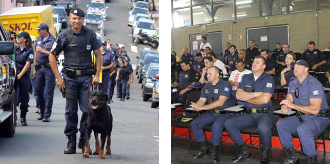 PALESTRAS - Logo após a Marcha, os companheiros se dirigiram ao auditório da Faculdade IESI, no Centro de Itapira. Foram ministradas diversas palestras com os temas: Aparelhamento da Polícia; Polícia Preventiva; Valorização dos Recursos Humanos; e Gestão do Conhecimento. |