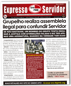 O Sindicato dos Trabalhadores do Serviço Público Municipal de Boituva (STSPMB) começou a distribuir hoje (15) a segunda edição do informativo - Expresso Servidor. A publicação destaca os ganhos obtidos pelo STSPMB nos últimos anos e traz em sua manchete nosso repúdio contra um grupelho que quer destruir o Sindicato. No início da semana, um grupo tentou voltar-se contra o Sindicato. E o tiro saiu pela culatra.