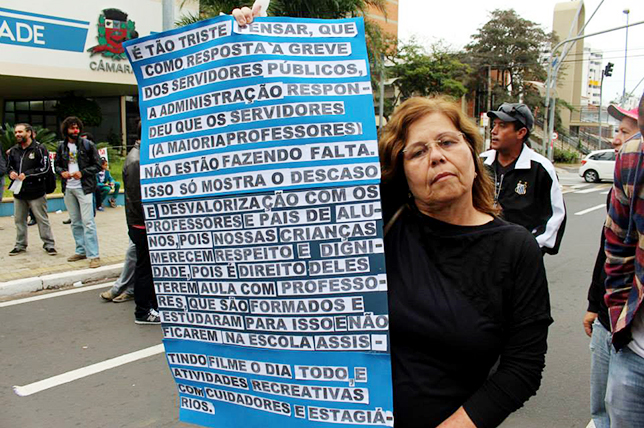 Motivos: a administração não negocia com o Sindicato melhorias para os Servidores e, se não bastasse, encaminhou um projeto de lei à Câmara reajustando os salários do funcionalismo em 4%. Pra piorar, o legislativo barrou a entrada da população e de dirigentes sindicais durante a votação.