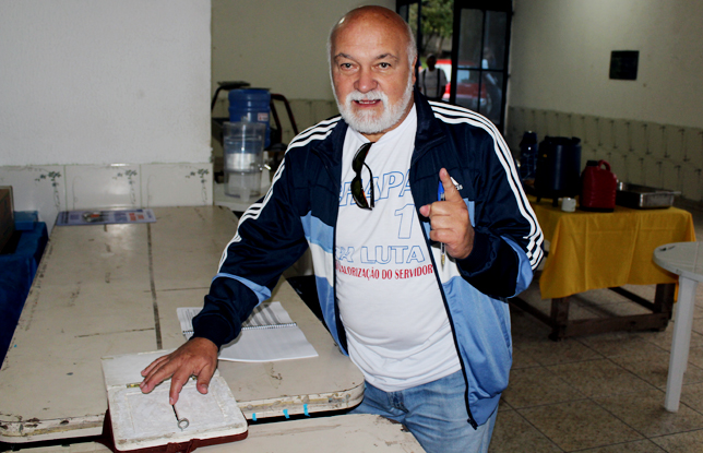 | Jesomar Alves Lobo, encabeçador da Chapa 1 e atual presidente do Sindicato de Mauá, durante votação |