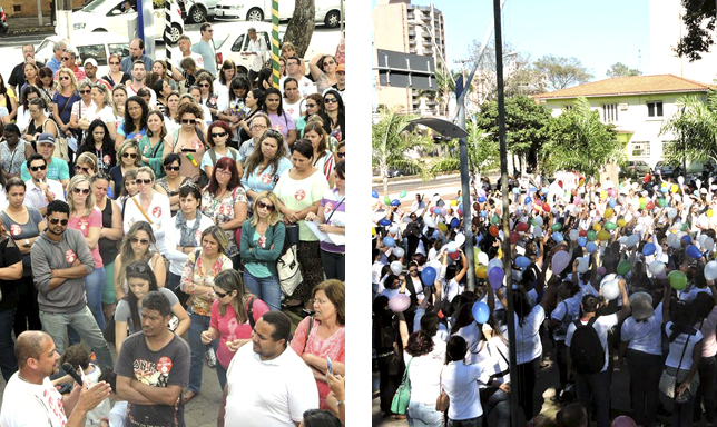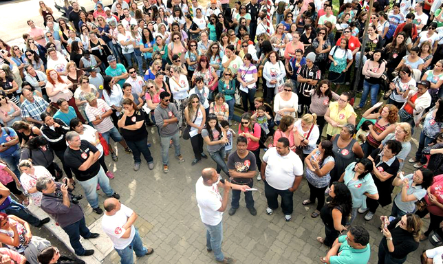 MOTIVO - A administração não negocia com o Sindicato melhorias para os Servidores e, se não bastasse, encaminhou um projeto de lei à Câmara reajustando os salários do funcionalismo em 4%. Pra piorar, o legislativo barrou a entrada da população e de dirigentes sindicais durante a votação.