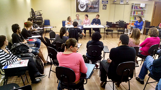 Promovido pelo Centro de Estudos de Mídia Alternativa Barão de Itararé, dia 17 de junho, o debate "Comunicação e Trabalho" contou com os especialistas Roseli Fígaro, professora da Escola de Comunicação da Universidade de São Paulo (ECA/USP); César Bolaño, professor de Economia da Universidade Federal de Sergipe (DEE/UFS); e Paulo Zocchi, presidente do Sindicato dos Jornalistas.
