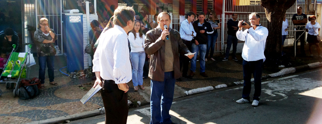 | Uma forte paralisação coordenada pelo Sindicato dos Servidores de Paulínia, inclusive com a presença do nosso presidente Aires Ribeiro, foi fundamental para que a prefeitura voltasse atrás e recebesse a entidade para tratar de assuntos relacionados aos interesses econômicos e sociais da categoria. O ato foi realizado no dia 16 de abril em frente à administração municipal.