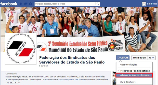 Fortalecimento - "Temos que usar as novas tecnologias ao nosso favor. A Fan Page é mais uma ferramenta que a Fesspmesp passa a utilizar para divulgar as ações da nossa Federação e as principais lutas e conquistas de Sindicatos filiados", afirma nosso secretário de Imprensa Denilson Bandeira.