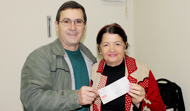 Recebimento - Dia 27 de maio, muitos contemplados foram ao Sindicato retirar o seu cheque. Entre eles: Maria Helena de Oliveira Caetano, Silvia Regina Lopes e Therezinha Constância Maziero, que trabalhou por mais de 30 anos na Fumasa.