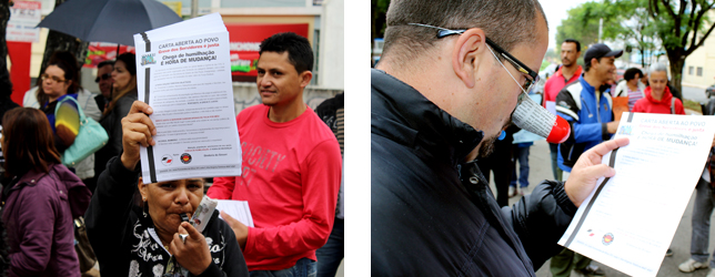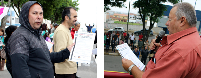 | Companheiros conferem carta aberta antes de ser distribuída para a população. Aceitação foi geral! |