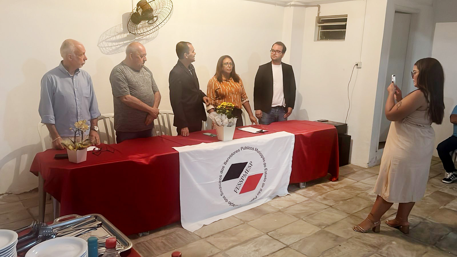 A solenidade contou com a presença maciça de representantes de Sindicatos de cidades vizinhas, como Piquete, Guaratinguetá, Bananal, Lorena e São José do Barreiro, demonstrando a força do movimento sindical no Vale do Paraíba. A Fesspmesp marcou presença com uma comitiva expressiva: o diretor de comunicação José Eduardo Ayres representou a Federação, acompanhado do coordenador de eleições Rubens Teixeira Gomes, o Rubinho, e do colaborador Marcelo Fernandes. A presença da Federação reforçou o apoio institucional à nova gestão e o compromisso da entidade em assessorar e caminhar lado a lado com os servidores de Cruzeiro e Queluz na defesa de um serviço público de qualidade.